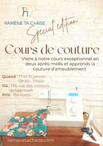 Ce serait super si tu pouvais amener ta propre machine à coudre, mais pas de stress si tu n’en as pas : fais-nous juste signe et on trouvera une solution ensemble !